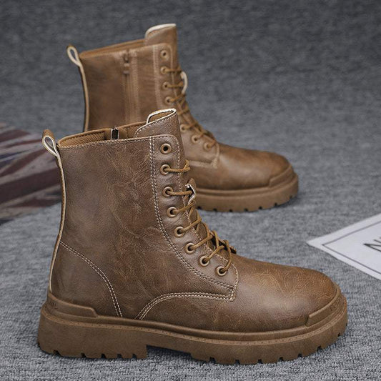 Men's High-top British Platform Work Shoes Leather Boots Retro Cycling Boots