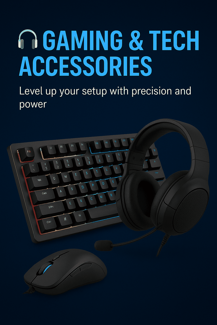 Unleash your full gaming potential with our Gaming & Tech Accessories Collection. From high-performance headsets and precision mice to immersive lighting and must-have tech add-ons — everything here is designed to elevate your gameplay and workspace. Whether you’re a casual gamer or a pro, discover accessories that combine style, comfort, and cutting-edge performance.