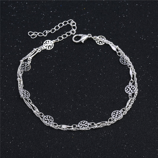Bohemian Jewelry Antique Silver Color Hollow Flower Chain Anklets Beach Barefoot Sandals Foot Jewelry