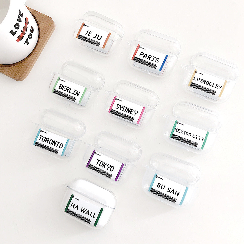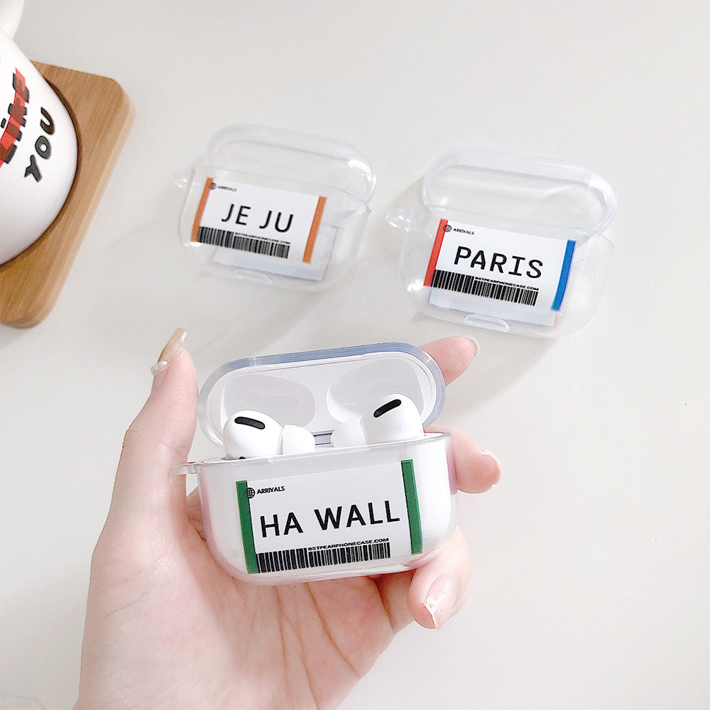 Compatible with Apple, Plane ticket cover city bar code label headphone case for Airpods Pro