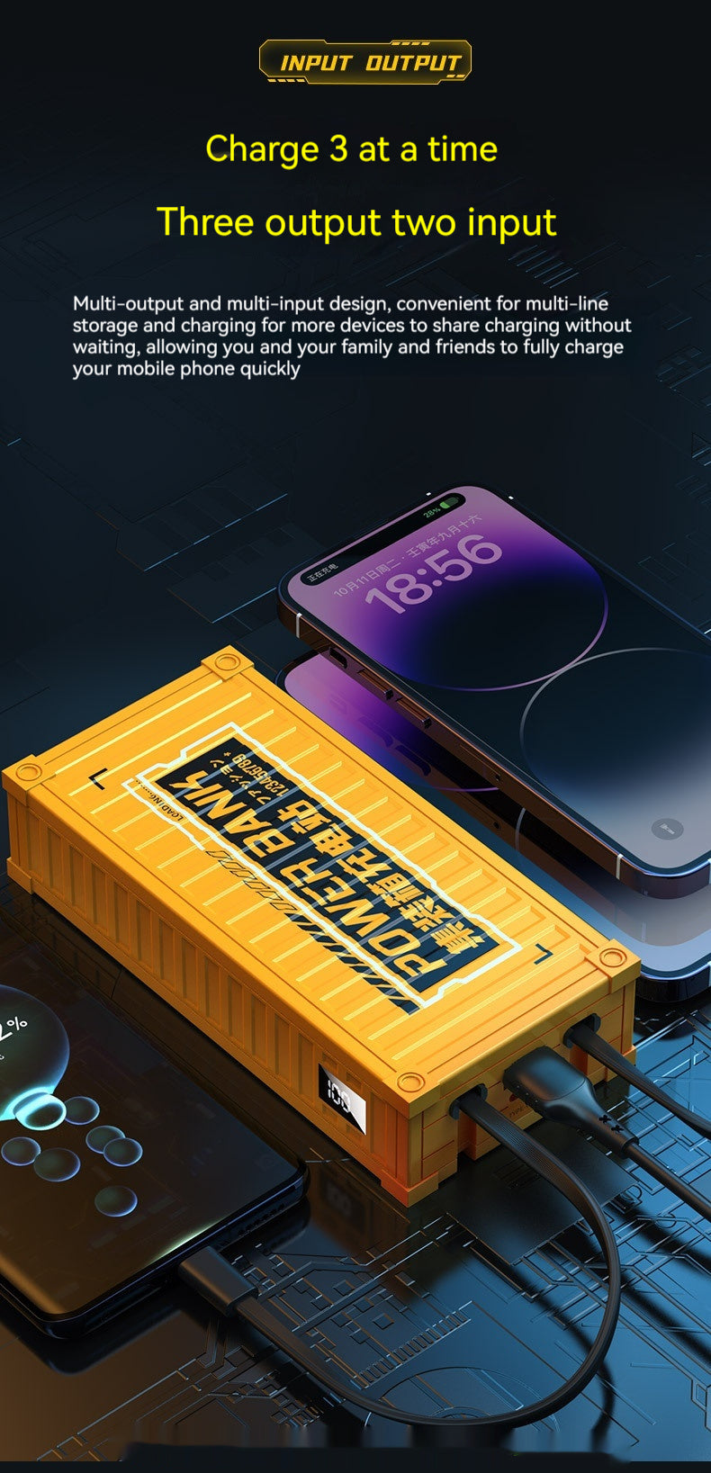 Container With Cable Power Bank Industrial Wind 1000020000mAh Mobile Power Supply