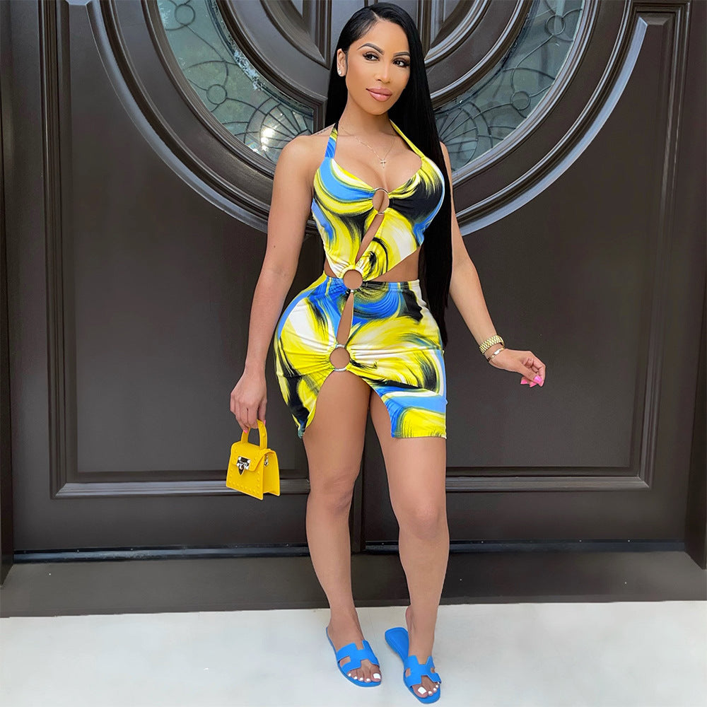 Hollow Fashion Color Printing Nightclub Women's Clothing