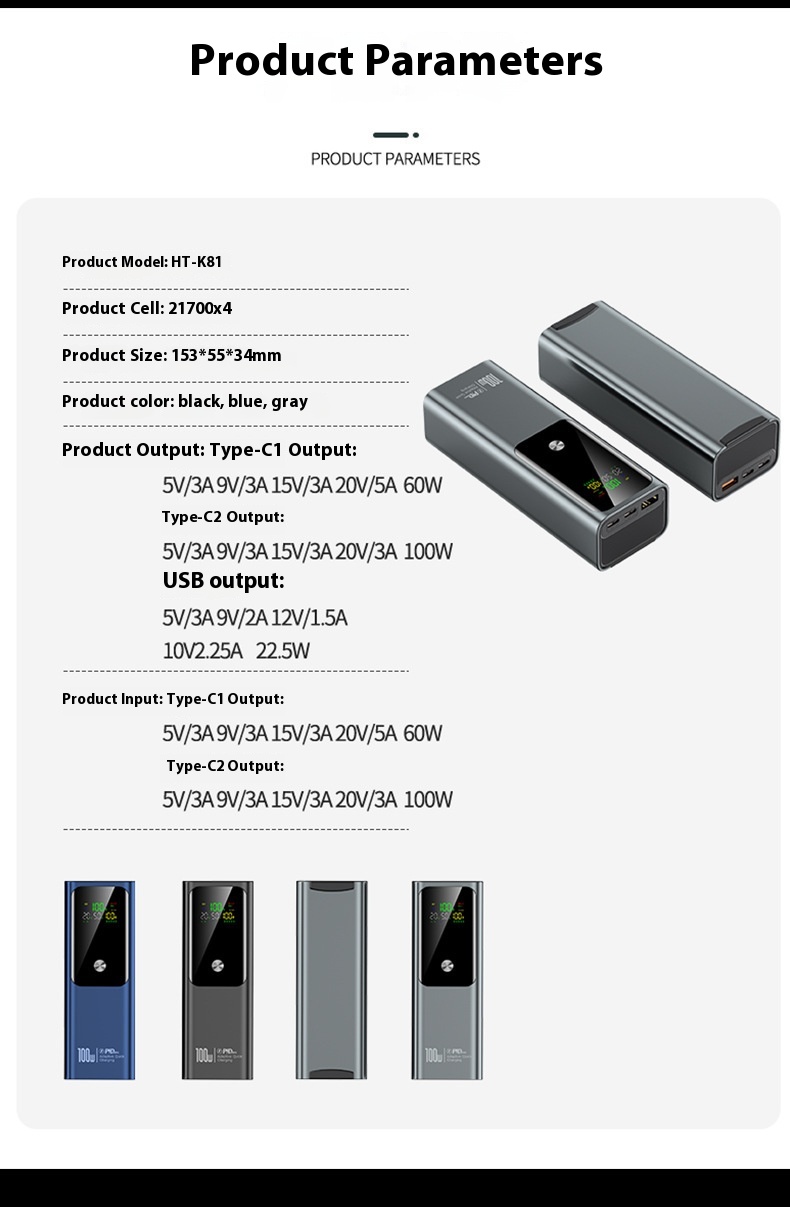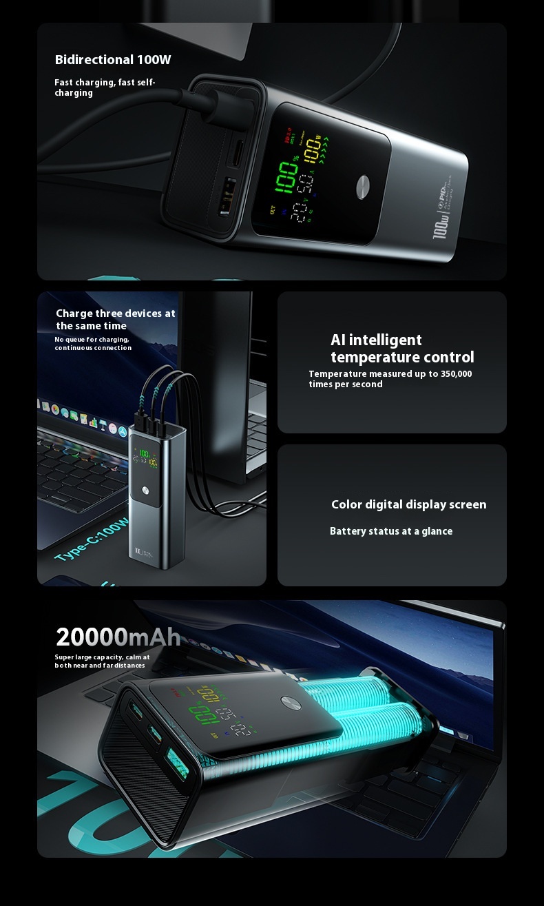 Two-way Fast Charge Large Capacity Portable Power 20000 MA Mobile Power Supply