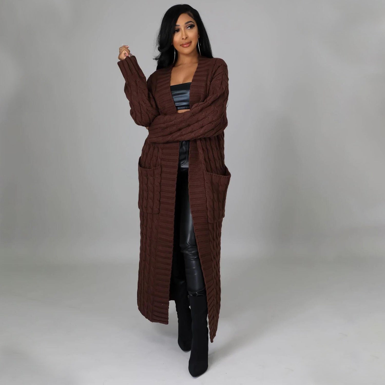 Women's Clothing Fashion Long Sleeve Long Sweater Coat